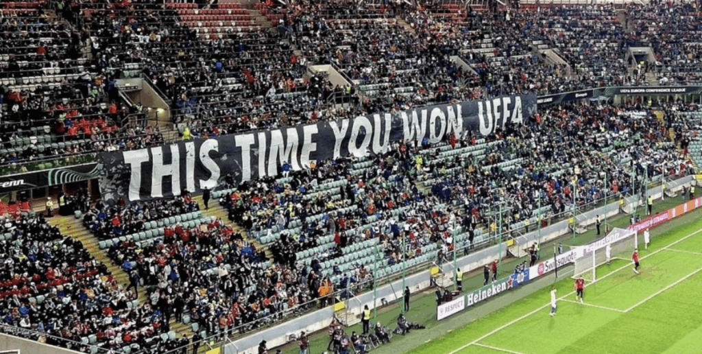 Η UEFA, ωστόσο, συνέχισε να θέτει τη Λέγκια προ των ευθυνών της. Λόγω των επεισοδίων απαγορεύτηκε στους οπαδούς του συλλόγου να ακολουθήσουν την ομάδα τους σε έξι ευρωπαϊκά εκτός έδρας παιχνίδια. «Αυτού του είδους η συμπεριφορά δεν θα πρέπει να γίνεται ανεκτή σε αγώνες διοργανώσεων της UEFA», ανέφερε η διοργανώτρια αρχή σε έκθεσή της από τον Δεκέμβριο του 2023. Το κατηγορητήριο της Λέγκια είναι μακρύ και συνεχώς μεγαλώνει. Διατάραξη πλήθους, ρίψη αντικειμένων, άναμμα πυροτεχνημάτων, προκλητικά μηνύματα και αποκλεισμός δρόμων έχουν όλα καταγραφεί τους τελευταίους 18 μήνες. Είναι μια διαρκής μάχη με το πειθαρχικό σκέλος της UEFA.