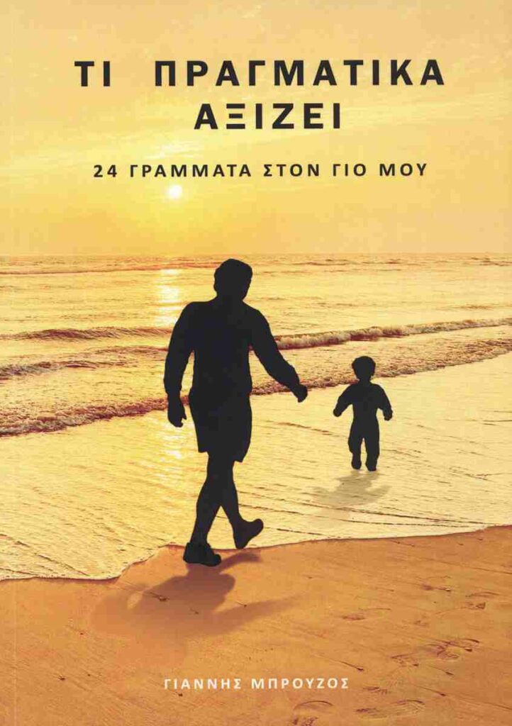 Τα 24 γράμματα χωρίζονται σε τρεις ενότητες: Η πρώτη έχει τίτλο «Να συνδέεσαι και να μοιράζεσαι», η δεύτερη «Να μαθαίνεις και να δημιουργείς», η τρίτη «Να αντιστέκεσαι, να απολαμβάνεις, να αποδέχεσαι». Είμαι σχεδόν 47 χρονών, χωρίς παιδιά και διάβασα το βιβλίο σαν νεράκι, μέσα σε δύο ημέρες. Κατάλαβα ότι κι εγώ το χρειαζόμουν, ως ένα μάθημα διαρκούς υπενθύμισης για τις ανθρωπιστικές αξίες που μέσα στο παράλογα ανταγωνιστικό νεοφιλελεύθερο περιβάλλον που ζούμε καθημερινά έχουν παραγκωνιστεί, έχουν σχεδόν γίνει αόρατες. Μάθημα καθόλου διδακτικό, καθόλου με σηκωμένο το δάχτυλο. Ο Μπρούζος ξέρει ως εκπαιδευτικός ότι τίποτα δεν μπορούμε να μάθουμε στον άλλον μέσω της επιβολής ή με τον «μανδύα» της αυθεντίας. Χαρακτηριστικό παράδειγμα αυτής της έλλειψης διδακτισμού είναι ότι αναφέρονται φράσεις ή επιτεύγματα σπουδαίων ανθρώπων που πρόσφεραν στην πορεία μας ως είδους αλλά χωρίς να αναφέρονται τα ονόματά τους γιατί όπως εξηγεί ο Μπρούζος στον Στέλιο του, «στο λουλουδάκι του», δεν θέλει να του δώσει τις απαντήσεις, αλλά να του κινήσει την περιέργεια και να ψάξει εκείνος να βρει ποιοι ήταν αυτοί οι άνθρωποι.