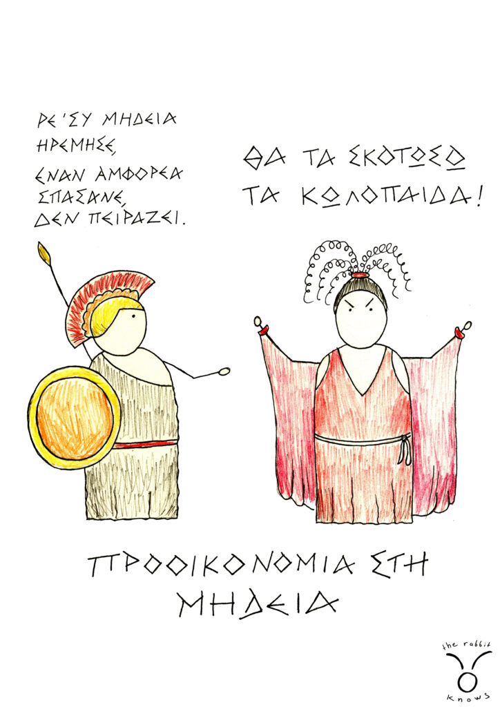 Δεν περίμενα ποτέ ότι τα σκίτσα μου θα γίνουν viral. Από τα πρώτα που κυκλοφόρησαν πολύ ήταν το «Αναρχία στην κούκλα μου τη γλυκιά» και μετά εκείνα με τη Μήδεια. Ξεκίνησα να δουλεύω την «Αναρχία» γιατί πρώτα απ’ όλα γελούσα εγώ και έτσι σιγά σιγά άρχισαν να μαζεύονται σκίτσα. Κοιτώντας προς τα πίσω όσα είχα κάνει έβλεπα ότι μου άρεσαν. Ακολούθησαν οι εκθέσεις «Αναρχία στη νοσταλγία» το 2018 και «Αναρχία στα παραμύθια» το 2023. Η λογική της σειράς είναι να ανατρέψω τα στερεότυπα για να πω τι πιστεύω για ένα θέμα.