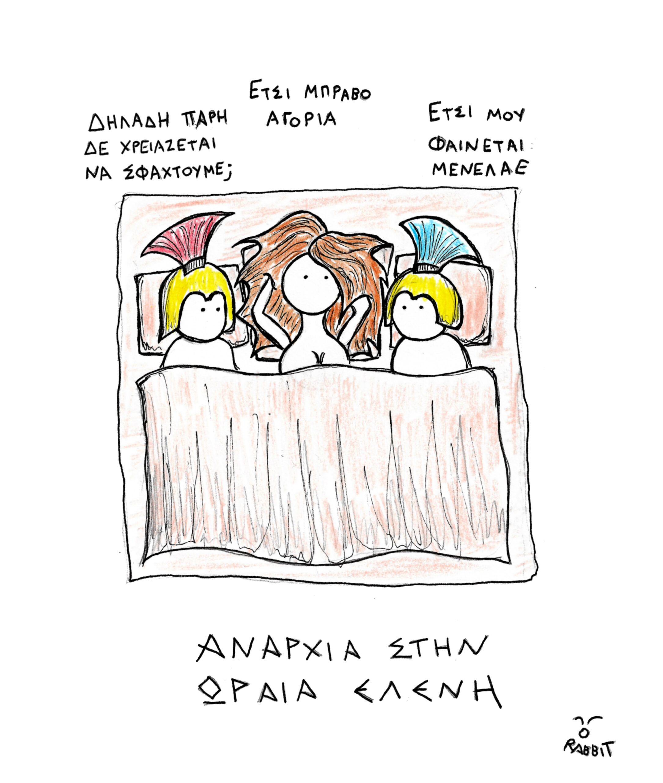 Ο Τhe Rabbit Knows αφηγείται πώς ασχολήθηκε με το σκίτσο, γιατί απέκτησε το ψευδώνυμο Λαγός, εξαιτίας ποιου έργου δέχτηκε μέχρι και απειλές για τη ζωή του, τι σημαίνει γι’ αυτόν η τέχνη των σκίτσων. Με αφορμή την κυκλοφορία του πρώτου του βιβλίου από τις Εκδόσεις Κάκτος, ξεφυλλίζουμε μαζί μια διαδρομή που ξεκινά από τον Garfield και τα παιδικά τετράδια, περνά από τη Βαβέλ, τον Αρκά και τον Asterix, φτάνει στις «Αναρχίες» και συναντά –χωρίς να το επιδιώκει– το virality, το hate και τις απειλές. Ένα ταξίδι που γίνεται πάντα με το χέρι: πενάκι, μολύβι, χαρτί. Σαν να επιμένει ότι η σκέψη πρέπει πρώτα να λερωθεί για να αποκτήσει μορφή. Σε αυτή τη συνέντευξη δεν υπάρχει μανιφέστο, ούτε πολεμική διάθεση. Υπάρχει μια ήρεμη επιμονή: ότι το σκίτσο μπορεί να είναι πολιτικό χωρίς να ουρλιάζει, αιχμηρό χωρίς να γίνεται βίαιο, και βαθιά ανθρώπινο χωρίς να ζητά συγγνώμη. Όπως ακριβώς και ο δημιουργός του.