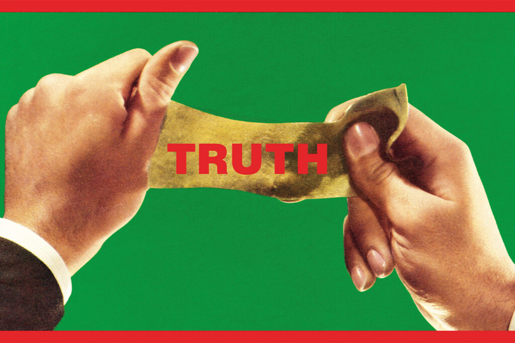Η Κρούγκερ δεν αποκαλύπτει κάτι κρυφό. Κάνει φανερό κάτι που ήταν ήδη μπροστά μας. Και αυτό εξηγεί γιατί το έργο της παραμένει τόσο επίμονα σύγχρονο. Σε έναν κόσμο όπου η ψηφιακή πραγματικότητα έχει επιταχύνει τον χρόνο και έχει διαβρώσει την έννοια της αλήθειας, επισημαίνει κάτι σχεδόν αυτονόητο που συχνά περνά απαρατήρητο. Σήμερα όλοι έχουν πρόσβαση στην «αλήθεια», αλλά ακριβώς γι’ αυτό η αλήθεια γίνεται όλο και πιο εύθραυστη. Η συνωμοσία δεν είναι πλέον περιθώριο. Είναι μέρος της κυρίαρχης αφήγησης.