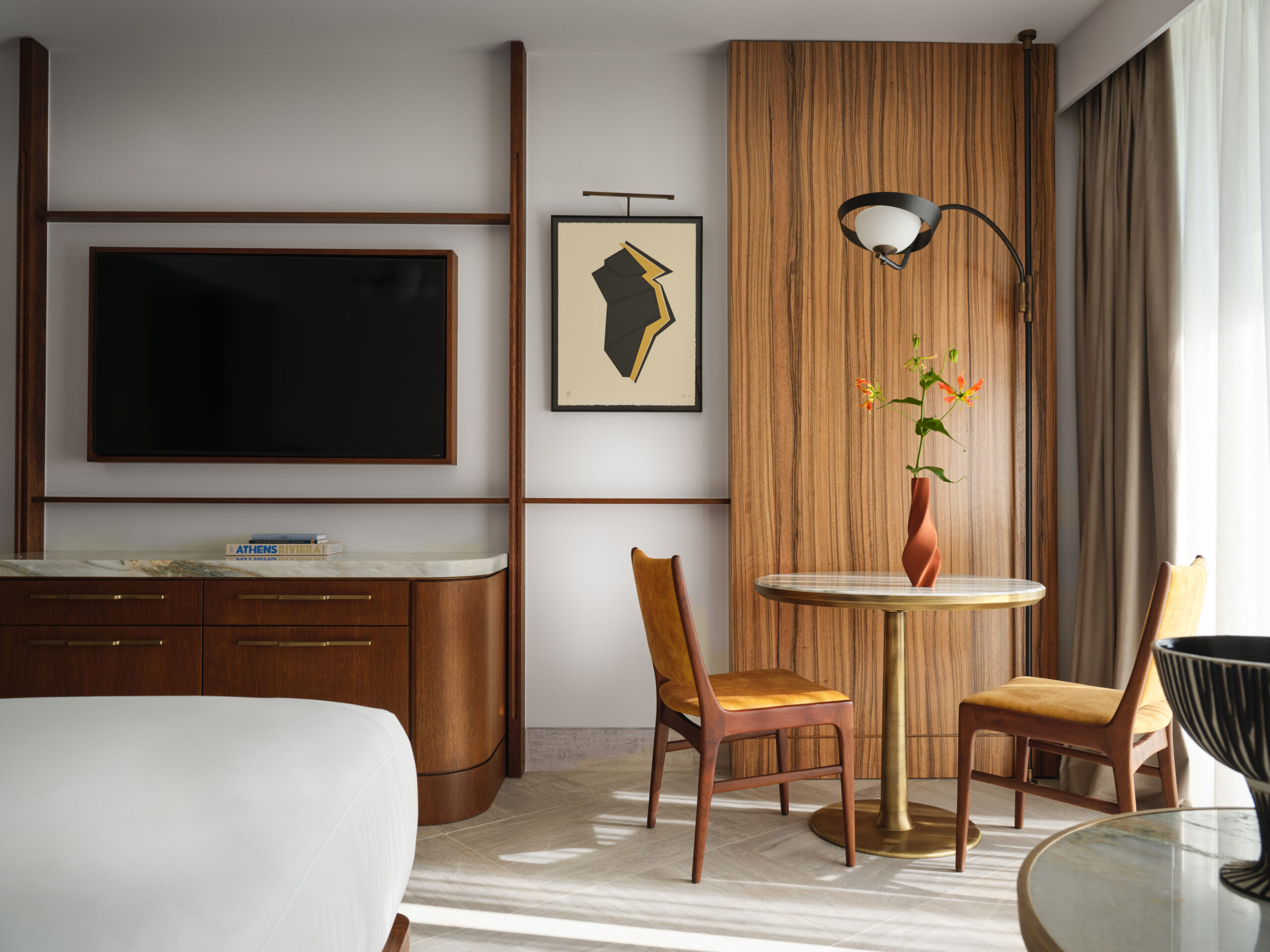 Η αρχιτεκτονική και το design αφηγούνται μια ιστορία που ξεκινά από τη μεταπολεμική Αθήνα και φτάνει μέχρι το σήμερα. Οι εμβληματικές όψεις του Γιάννη Μόραλη έχουν διατηρηθεί με σεβασμό, ενώ ο φωτισμός της Ελευθερία Ντεκώ αναδεικνύει το κτίριο τη νύχτα με μια διακριτική θεατρικότητα. Στο εσωτερικό, η συνεργασία των AETER Architects και AvroKO δημιουργεί χώρους που συνδυάζουν mid-century αναφορές με σύγχρονη κομψότητα, ένα αποτέλεσμα που μοιάζει οικείο αλλά και σύγχρονο.