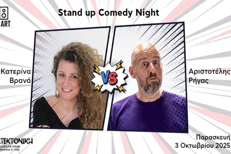 Stand-up comedy night με την Κατερίνα Βρανά και τον Αριστοτέλη Ρήγα. Η σκηνή της Αρχιτεκτονικής Live Stage θα φιλοξενήσει δύο αναγνωρίσιμους stand-up κωμικούς για μια βραδιά γέλιου.