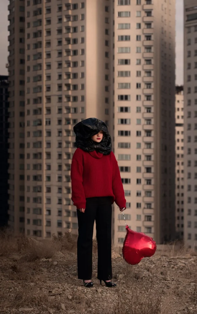 Η φωτογράφος αναφέρει ότι το μαύρο πλαστικό που καλύπτει το κεφάλι της γυναίκας συμβολίζει «σκοτεινές σκέψεις και την επιβολή πεποιθήσεων», ενώ το μπαλόνι που πέφτει μπορεί να εκφράζει «τη χαμένη της ελπίδα». Σημειώνει ακόμη πως «τα κόκκινα ρούχα και τα χείλη είναι το αιματηρό τίμημα που έχουν πληρώσει οι γυναίκες» στην αστική κοινωνία του Ιράν, σκηνικό των πρόσφατων διαδηλώσεων.