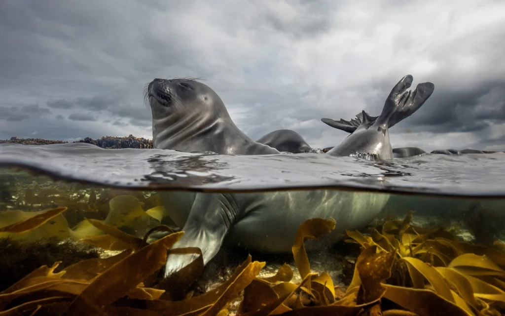 Οι μικροί θαλάσσιοι ελέφαντες— γνωστοί και ως «weaners» — συγκεντρώνονται γύρω από φυσικές λιμνοδεξαμενές βράχων στα Νησιά Φώκλαντ, όπου εξασκούνται στο κολύμπι και στις καταδύσεις μέχρι να είναι έτοιμα να βγουν στην ανοιχτή θάλασσα.