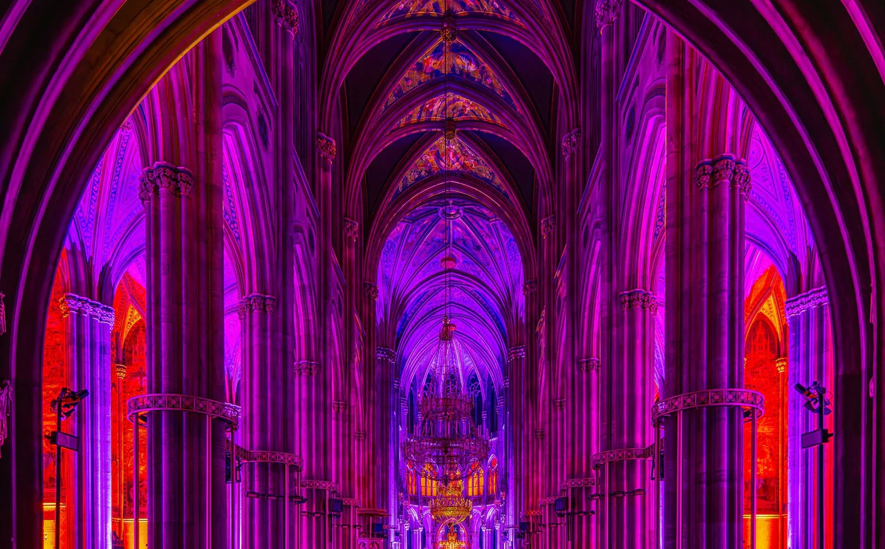 Ένα light show στον Ναό Votive στη Βιέννη της Αυστρίας συνδυάζει φωτισμό και μουσική, δημιουργώντας μια καθηλωτική, ατμοσφαιρική εμπειρία.