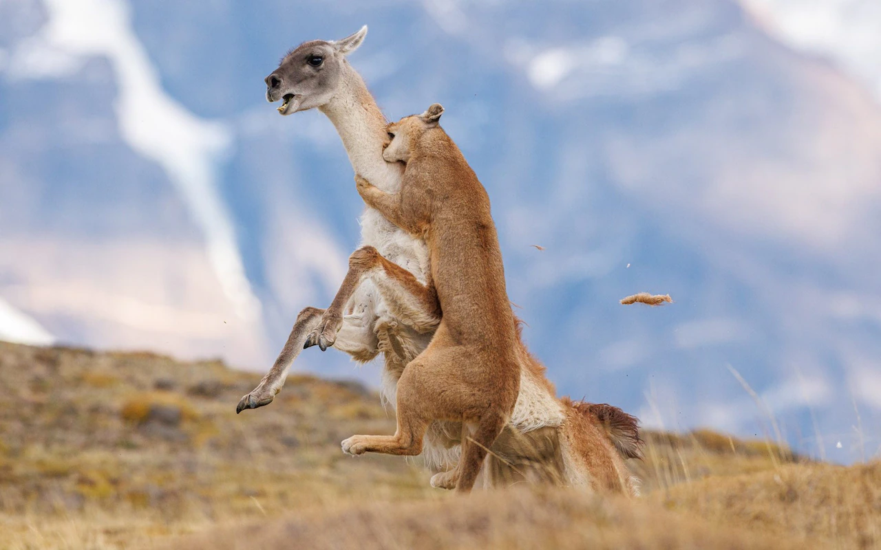 Το Torres del Paine στη Χιλή είναι γνωστό για τα εντυπωσιακά του τοπία, αλλά αποτελεί και βιότοπο του πούμα. Αυτά τα επιβλητικά ζώα τρέφονται κυρίως με γουανάκο, αν και το ποσοστό επιτυχίας στο κυνήγι δεν είναι ιδιαίτερα υψηλό, ειδικά για τα θηλυκά. Ο φωτογράφος παρακολούθησε αυτό το θηλυκό και τα δύο μικρά του για αρκετές ημέρες, πριν γίνει μάρτυρας της στιγμής που κατέβαλε το θήραμά του.