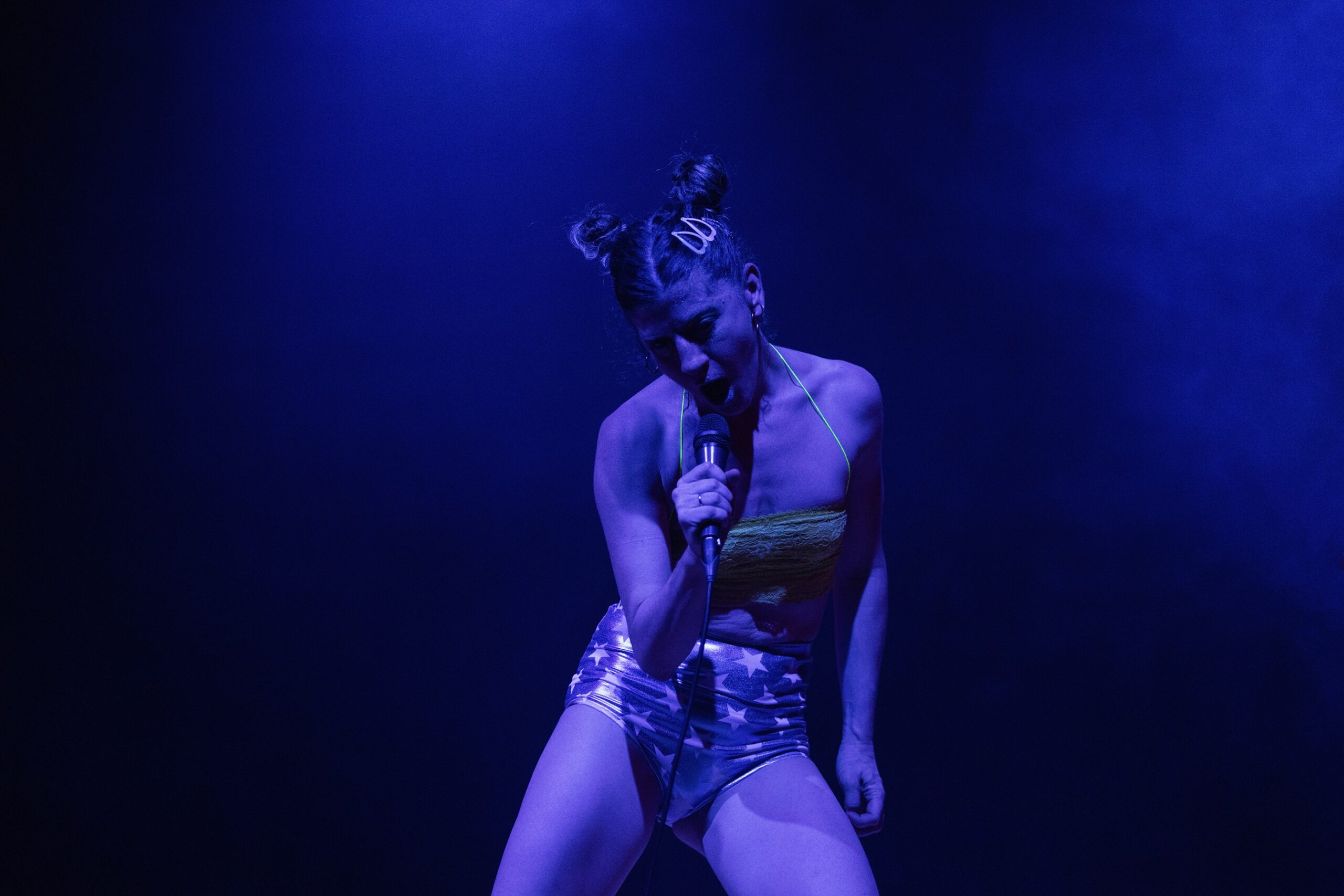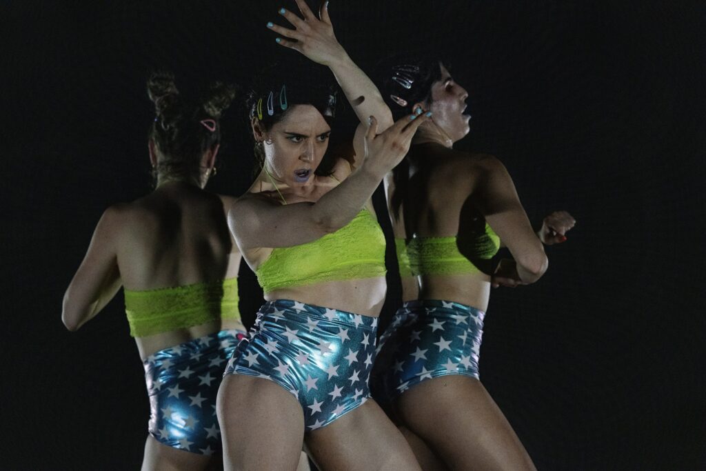 Οι Ιωάννα Αποστόλου, Κωνσταντίνα Μπάρκουλη και Θεανώ Ξυδιά κινούνται ακατάπαυστα, εγκλωβισμένες σε έναν κύκλο φιλοδοξίας, εξάντλησης και επιμονής. Το σώμα γίνεται το πεδίο όπου συγκρούονται η ανάγκη για αναγνώριση και το κόστος που αυτή απαιτεί. Δεν υπάρχει αφήγηση με αρχή, μέση και τέλος· υπάρχει επανάληψη, ένταση, φθορά. Όπως ακριβώς και στον κόσμο του θεάματος. Οι ηλεκτρονικοί, υποβλητικοί ήχοι του Αντώνη Παλάσκα δεν συνοδεύουν απλώς την κίνηση – την ωθούν, την πιέζουν, την εκθέτουν. Δημιουργούν μια συνθήκη σχεδόν συναυλιακή, μια απόκοσμη performance όπου η ενέργεια ανεβαίνει, αλλά η ανάσα λιγοστεύει. Το Superstar μοιάζει στιγμές με live, στιγμές με τελετουργία, στιγμές με αγώνα επιβίωσης.