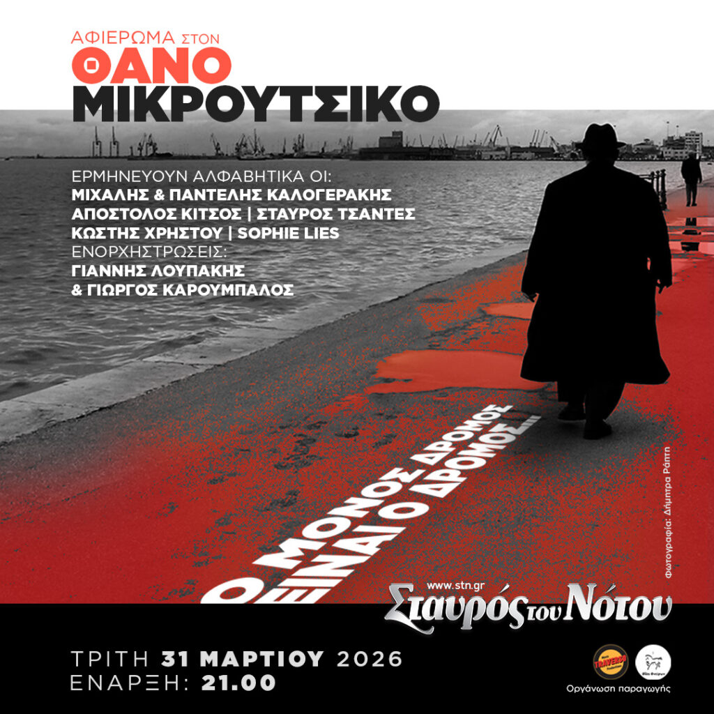 Έτοιμοι να μας ταξιδεύσουν «πάνω στο φτερό του καρχαρία» – για να παραφράσουμε τον εμβληματικό στίχο από την «Γυναίκα» του Νίκου Καββαδία – είναι νέοι δημιουργοί, στην Τρίτη 31 Μαρτίου, στην Κεντρική Σκηνή του Σταυρού του Νότου. Οι Μιχάλης και Παντελής Καλογεράκης, Απόστολος Κίτσος, Σταύρος Τσαντές, Κωστής Χρήστου και Sophie Lies «ξαναδιαβάζουν» εμβληματικά τραγούδια του Θάνου Μικρούτσικου, παραδίδοντάς τα μέσα από το δικό τους πρίσμα. Ο συνθέτης στάθηκε σε όλη του την διαδρομή, δίπλα στους νέους δημιουργούς, στις ανησυχίες τους, προέτρεπε να κάνουν το έργο του δικό τους, διαμορφώνοντας την καλλιτεχνική τους διαλεκτική στις νέες συνθήκες που διαμορφώνονταν, σε κάθε γενιά. Ο ίδιος ήταν εκείνος που σημείωνε, πως κανένα έργο δεν μπορεί να μένει αδιάφορο κι αμετάβλητο μπροστά σ΄ έναν κόσμο που αλλάζει.